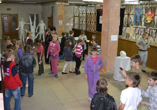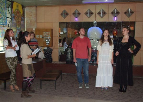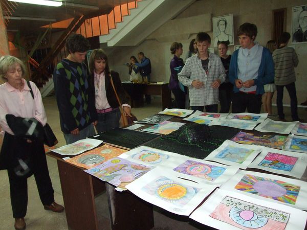 23.10.2012 12:55Наша бібліотека, як культурний центр міста, презентувала не одну виставку цього напрямку. Але відкриття проекту «От мала до велика» 21 жовтня зацікавило і здивувало багатьох відвідувачів нашого закладу. Студія креативної атмосфери, організаторами якої є Артем Васильєв і Світлана Павлова, представила сучасне мистецтво роботами художників стріт-арту, декораторів та дизайнерів, юних художників та графітістів, які своїми витворами показують, як вони бачуть світ сьогодні і в якому образі його можна уявити завтра. Згуртована творча молодь створила «казково-таємничу» атмосферу простору, заповнивши її роботами з різних матеріалів: маски з бісеру та пап’є-маше, «птахи щастя» з дерева, нестандартні картини, сучасне фото, роботи декоративного мистецтва. Та найбільш вражаючими є інсталяції fluoro-дизайну зроблені з використанням різних матеріалів (нитки, тканини, пінопласт, прядиво, флуоресцентні фарби та ін.), які мають властивості світитися при світлі ультрафіолетових ламп.