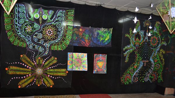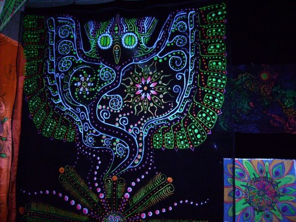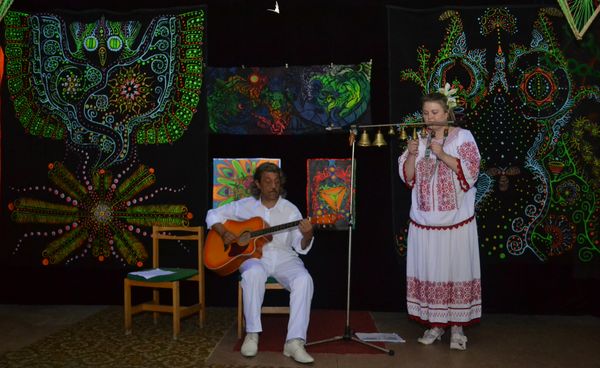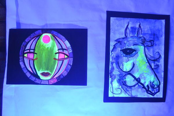 29.05.2013 10:59Експозиція виставки розташована в двох залах – темному та світлому, де художники відображають паралелі мистецтва дня та ночі. В світлій залі панує справжнє свято творчої фантазії, авторських задумів та ідей, виражених в художніх картинах, фотографіях, комп’ютерній та монохромній графіці, керамічних виробах та роботах декоративного мистецтва. Велику увагу відвідувачів на цій виставці привертає темна зала, де під чарівну музику можна подивитись на інсталяції fluoro-дизайну, зроблені з використанням різних матеріалів (нитки, тканини, пінопласт, прядиво, флуоресцентні фарби та ін.), які мають властивості світитися при світлі ультрафіолетових ламп.